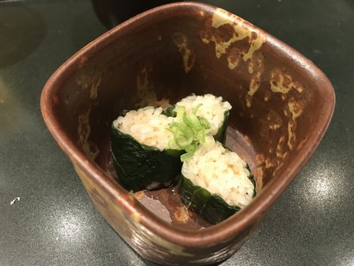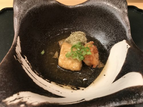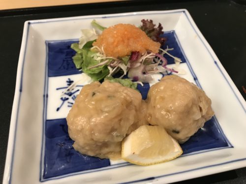 冬瓜の揚げ出しと海老の餡かけが登場しました!とろろがちゃんとアクセントできいています。とってもおいしい~!おいしいお料理に気にせずにいくらでも飲めてしまうお酒!楽しい会話に盛り上がります!