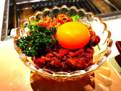 生ビールで乾杯した後にまずは極上ユッケをお願いしました!極上ユッケというネーミングの通りとってもおいしいユッケ!生肉最高ですね!