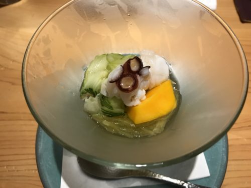 お椀が登場しました!ゆずを練りこんでありました!これがとっても秀逸!夏にぴったりの風味です!もちろんお出汁も最高!丁寧な仕事されています!松茸にも感動です!