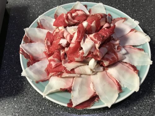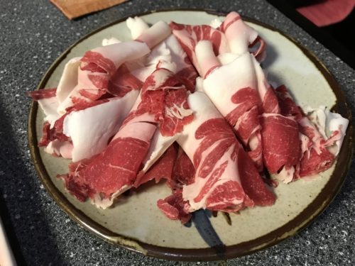 しゃぶしゃぶは特上肉をお願いしました~!ものすごく美しいいのししのお肉!このまま生で食べたくなっちゃいそうです。お鍋でしゃぶしゃぶしていただきます~!めちゃめちゃおいしい~!とっても柔らかくて飲んでしまいそう!