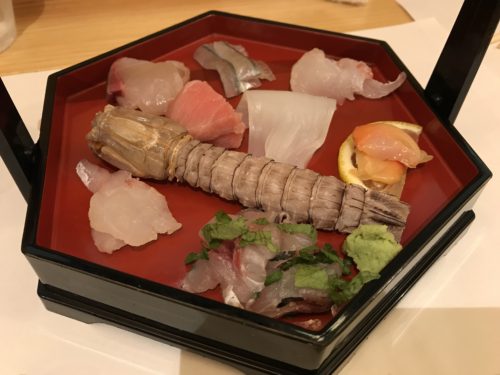 お刺身をお願いしました!大きなシャコがはいっていますね~!このシャコがこれまたおいしい~!他のお魚もめちゃめちゃおいしいです!