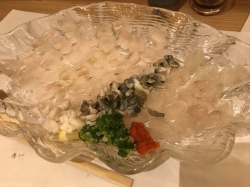 あなごのお刺身をだしていただきました~!めちゃめちゃおいしい~!この時点で日本酒でよっちゃっています。笑