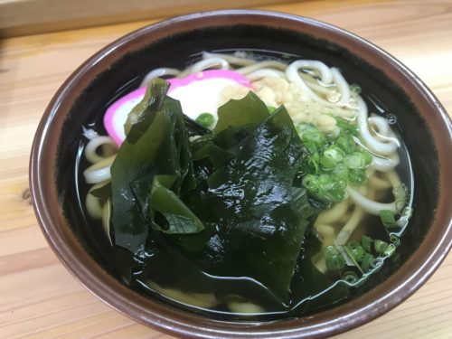 登場したわかめうどんはとってもおいしそう~!まずはお出汁からいただきます。昆布がしっかりきいたとってもおいしいお出汁でした~!うどんの麺もべっぴんうどんという広島のうどんを使用されていました。初めていただくべっぴんうどん、おいしかった~!