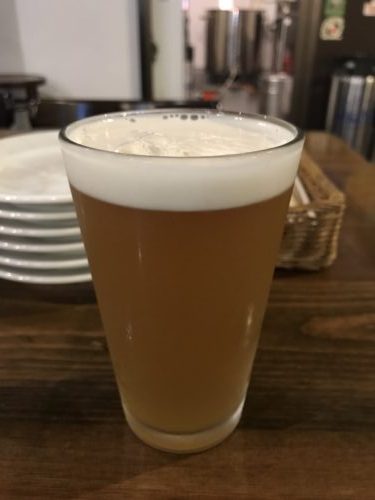 ということで最初の一杯は自家醸造ビールのワビサビIPAを!香りはフルーティー、後味にくる苦みが最高です!おいしい~!