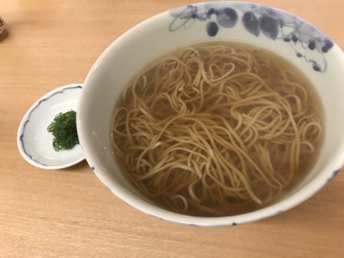 続いてお蕎麦が登場しました。まずはお出汁からいただきましたが素晴らしいですね~!大人になってからざるそばではなく出汁がいただけるかけそばの方が好みになってきました。そばもとってもおいしい~!