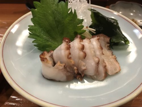 おいしそうなタコを刺身で!この日は食欲がマックスいっていたのでつまみでどんどん!何もつけずにいただいてもおいしい!