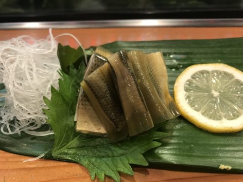 立派なコハダだな~と言ったら大将がこれはおいしいよと言っていただいたのでつまみで!酢でしめてありました!いただくと、、体が震える感覚が!あまりのおいしさにしびれました!なんというおいしさ!感動です!酢の感覚といい、コハダの大きさといい、昆布までも!最高!また食べたい!