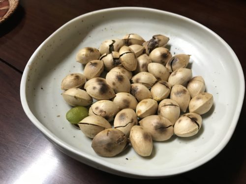 まずは生ビールで乾杯させていただいて、大将から銀杏をいただきました!おいしいですね~!この緑の銀杏がやっぱり最高!