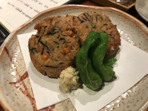 気になった自家製のがんもをお願いしました!外が少しカリッとさせてあって中がとってもふっくらしています。何もつけずに生姜だけをのせていただきましたが本当においしい~!一人一個だったのにお願いして私2個食べさせてもらったくらいです!