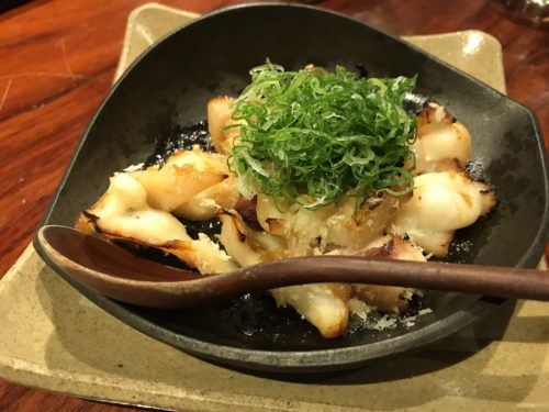 日本酒のあてとしてイカゲソを炙ってもらいました!こちらのイカもこれまたおいしいのなんのって!素晴らしいです~!旨味がじゅわ~っとでてきますよ~!