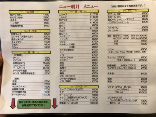 さて、先日ちょっと疲れていたときにどうしてもお肉が食べたくなってこちらのお店にお邪魔してきました!お店の名前はニュー明月さんです。広島駅から徒歩5分くらいのところにある老舗の焼肉屋さんですね~!