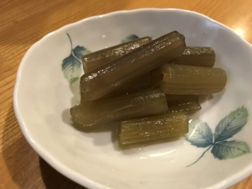 つづいて大好物のフキをいただきます。このフキもほんのり甘味を感じておいしんですよね~!最高ですね~!