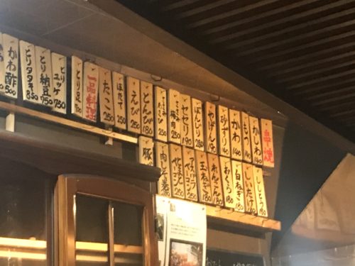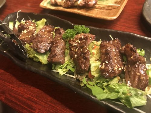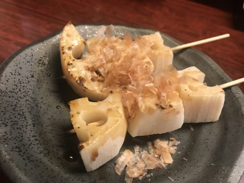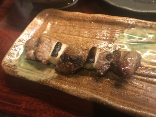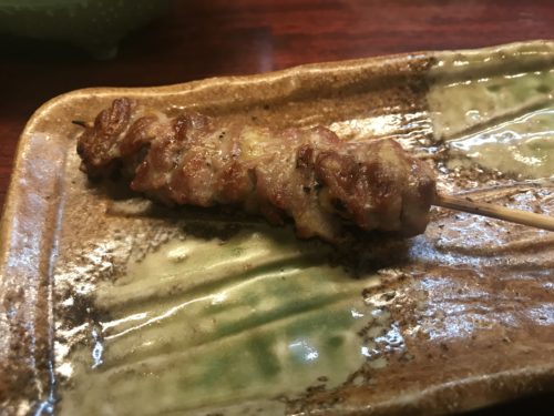 つづいて串をお願いしました。まずはもつです。いろいろな部位が入っています。塩加減が素晴らしい!