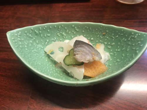 生ビールで乾杯させていただいて、先付の酢の物をいただきました。さっぱりとしてとってもおいしい~!