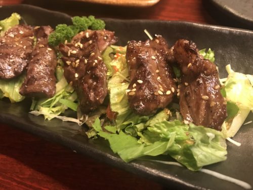 サラダをお願いしようと思ってメニューをみるとキソクサラダが!初めて聞きました。キソクはハラミの部分ですね。なんとたっぷりのハラミが!