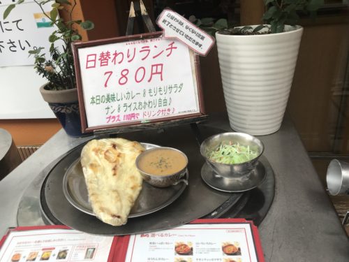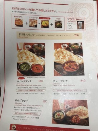 カナックさんのオーナーさんはインドの方です。日本語ペラペラですが!とっても笑顔が素敵ないい方なんですよ~!お店に入ってメニューを見てみます。カナックランチにするか、日替わりランチにするか悩みながらやっぱりカナックランチをお願いしました~!