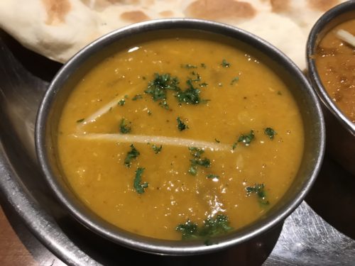 そして私のカナックランチが登場しました!スパイしチキンカレーと豆カレーのセットをお願いしました!しっとりしたナンと一緒にいただきます~!