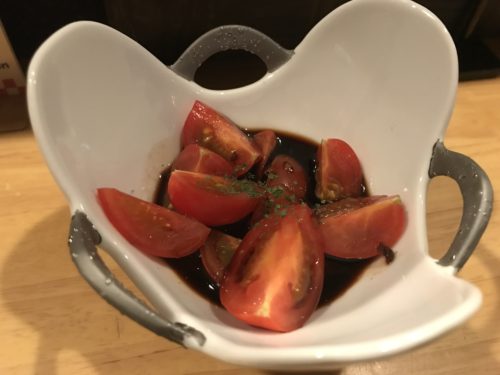 つづいてトマトの黒酢漬けを!体にいい感じ!