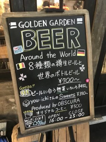 さて、行きたいな~とずっと思っていたのですがなかなか機会に恵まれず行けなかったお店にようやく伺うことができました~!世界のクラフトビールを豊富に取り揃えていらっしゃるゴールデンガーデンさんです。実は以前は今のお店の2階にあったのですが、1階に移転されました。
