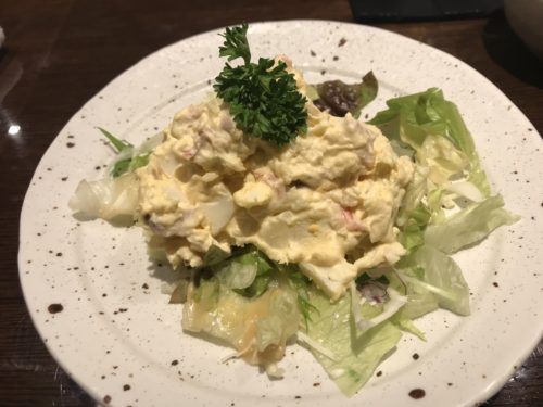 お酒をいただいていくと、お腹がだんだんとすいてきてポテトサラダをお願いしました!食感のいい貝が入っているのでめちゃめちゃおいしいですよ~!