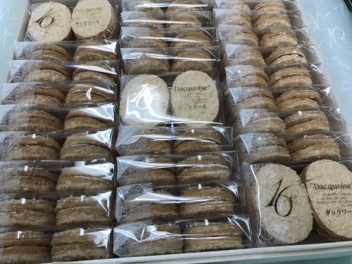 そしてやはりこちらを買って帰らないと~!このお店のフランス菓子16区のオーナーシェフが考案されたダックワーズ!海外で生まれたと思っていたのですが、なんとこの小型のダックワーズは日本生まれなんだそうですよ!すごいですね!