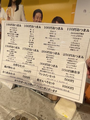 まずはビールをいただくことに!おつまみセットをお願いしました!700円以上のものが500円でいただけるんですって!