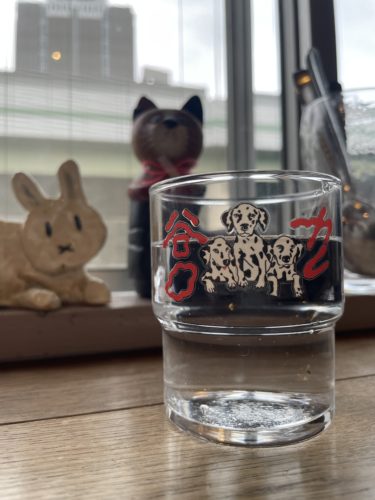 待っている間にグラスに水を注ぎます。そのときグラスをみてびっくり!谷口カレーさんのロゴが!かわいいですね!