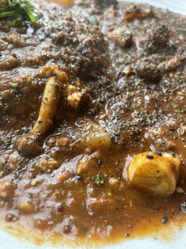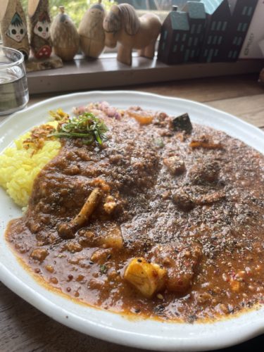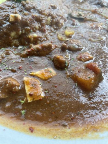 続いて麻辣豚バラキーマカレーが登場しました!こちらは辛口でおねがいしたのですが、麻辣の香りと山椒なのかな、香りが刺激的!