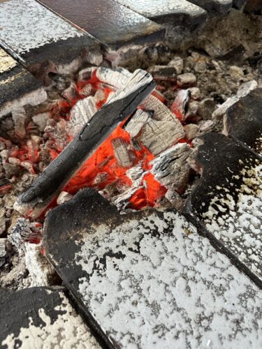 中にはいると炭火がすでにいこっています。いこるであっていますよね?笑
