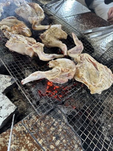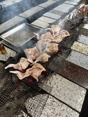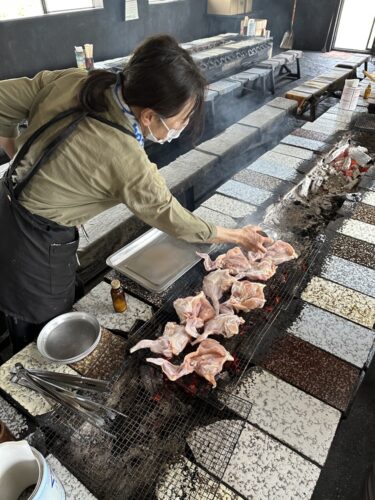 お店の方がたくさんの鶏肉を網の上にどさっと!すげ~ボリューム!