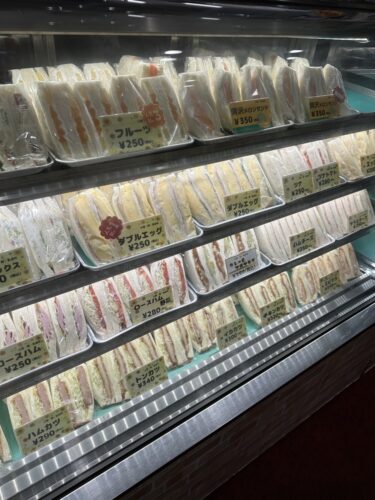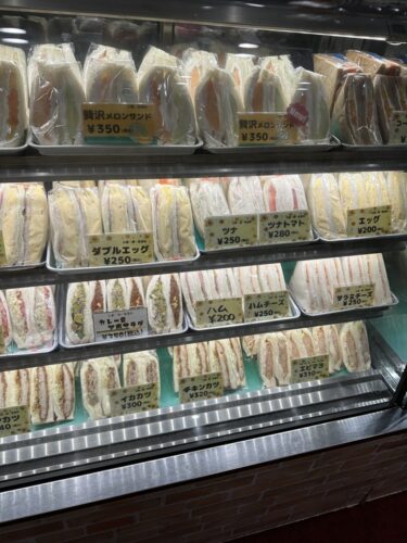 順番が回ってきて中にはいってみるとものすごい数のサンドイッチが!これは選ぶの大変だ~!期間限定で贅沢メロンサンドなるものも登場していました!