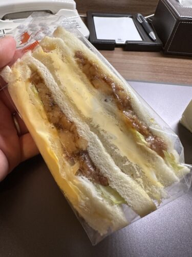 お値段が優しいな~と感じたのですが、そもそもサンドイッチって自宅以外で食べることがないから普通のお値段がわからず、、、でも次の日コンビニに行って確認してみたらサンドリアさんめちゃ安いってことがわかりました。