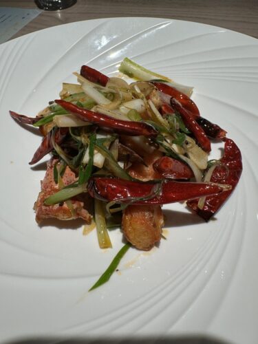 なかなか立派なタラバ蟹です!スパイシーでしたがいただいてみると美味しい~!中華料理でタラバ蟹をいただいたのは初めてでした!九条ネギととってもよくあいます!