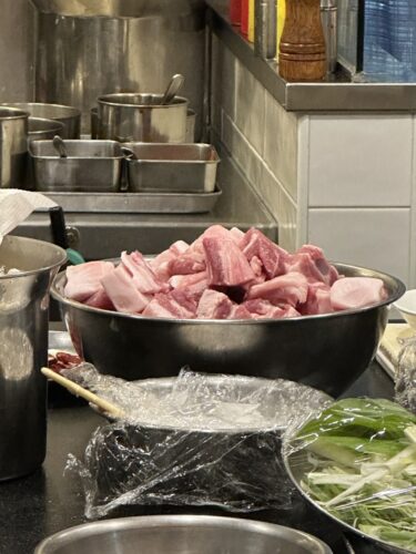 キッチンにたっぷりお肉があったので登場するとは思っていましたが蒸してあるとは!