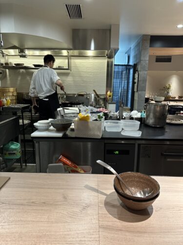 キッチンでシェフがものすごくアツアツに熱しておられるのが見えてました。と思ったらそこへ、、