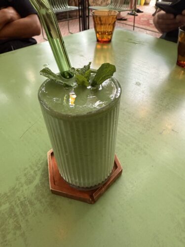 一緒にお願いしたグリーンスムージーがこれまたフレッシュ感がしっかりつたわってくるタイプで美味しい~!毎日これ飲んだら健康になるだろうな~!