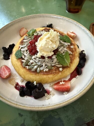 もう少しみんなで食べたいな~ということでパンケーキをお願いしました。体によさそうなグラノーラなどがたっぷりのっています。こちらもめっちゃ美味しい~!