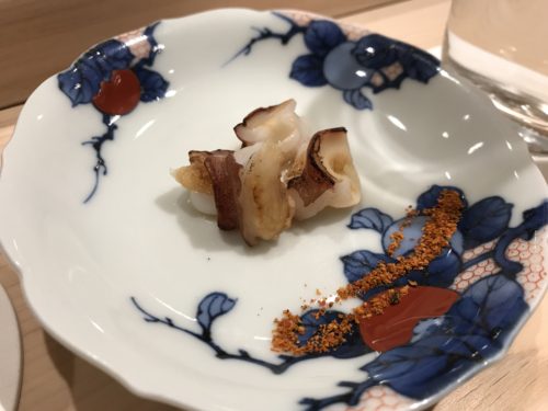 ここで広島の賀茂鶴をお願いして握ってもらいました!最初に登場したのがいままで食べたことがない一品でした!名前を失念しちゃいましたが超おいしい~!笑