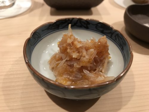 さて、鮨高山さんの続きです。魯山人のおちょこで日本酒をいただきながら、続いて登場したのがハマグリ!大好物!出汁まですべていただきました!超おいしいです!