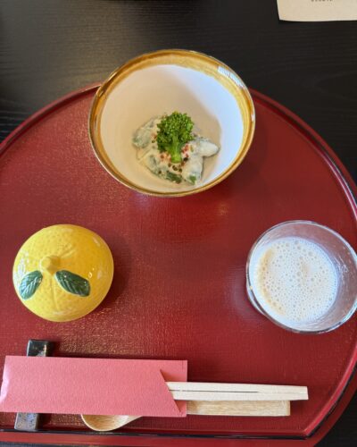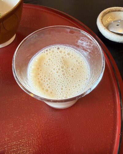 まずは朝しぼりたての豆乳、白和え、柚豆腐から!