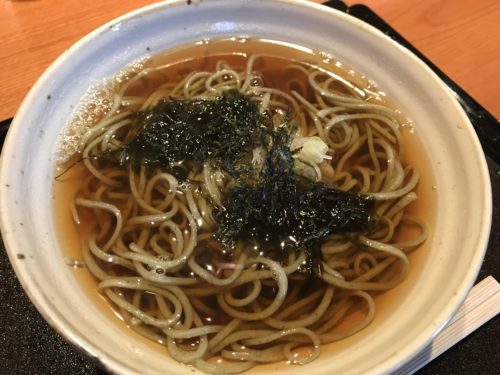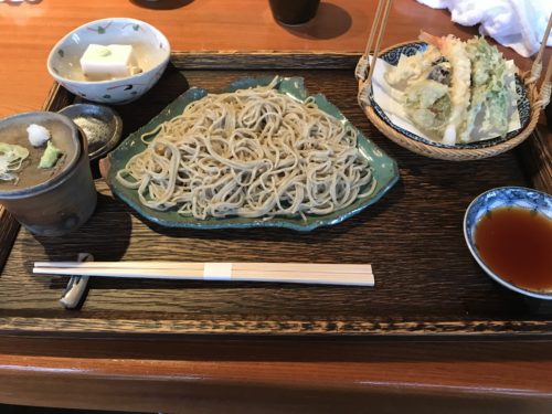 まずは友人がお願いした天ぷらもりそばが登場しました!とってもおいしそう!お店の方が塩でお蕎麦を食べてみてくださいとおっしゃっていてその通りたべるととってもおいしいそうです!へ~塩でそばですか!