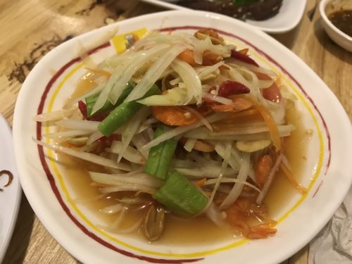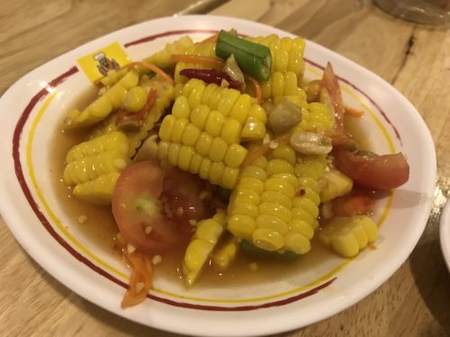 もちろんソムタムもいただきますよ~!ソムタムタイを頼んだのに、コーンがやってくるという、、笑。これもご愛敬!