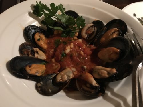 ムール貝が登場しました!こちらはお店のおすすめです!おすすめだけあって貝もおいしいし、味付けもとってもおいしい~!日本でいただくムール貝と全くかわらないです。トマトをたっぷり使っているのでうれしいですね~!