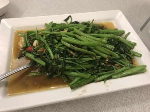最初はやっぱり安定の空心菜!最近は空心菜という名前がブランド化して気軽に呼べないそうです。東南アジアに行くときは空心菜が一番安心!どこにいってもおいしいです!ガーリックしっかりきいて美味!