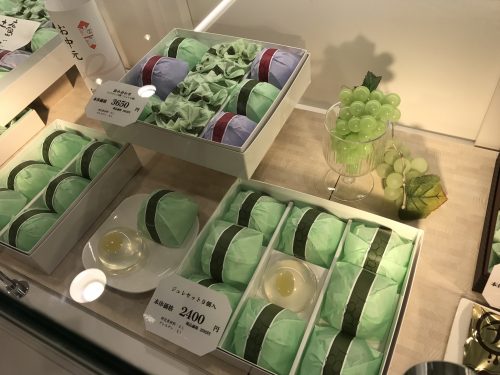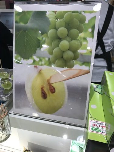 さて、スタッフ全員に何かおいしいお菓子がないかな~とたまに探しにでかけるのですが今日は近所のそごう広島店に伺ってきました~。といってもいつもと変わらないお店ばかりなので最近少し飽きてしまって、、、なにかいい商品ないかな~、、、あっ!とあるお店の前をとおってふとマスカットの和菓子が目に留まりました!ということは、、、