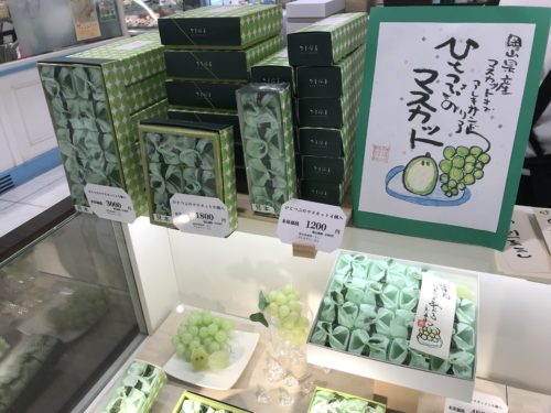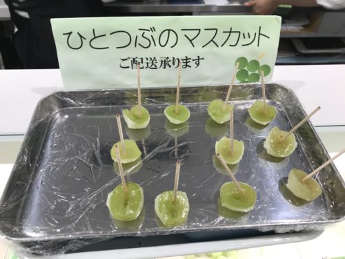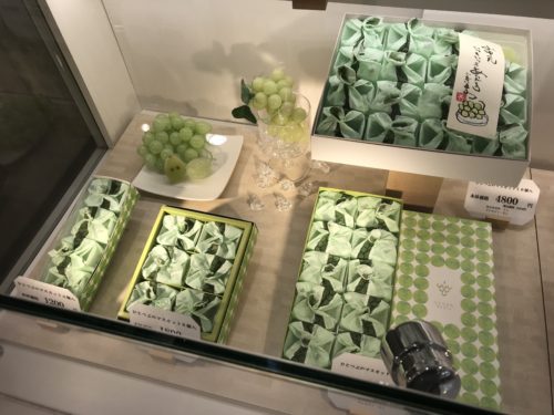いまほかの和菓子屋さんでも真似してだしているところもあるようですが、やはりひとつぶのマスカットがいいな~。