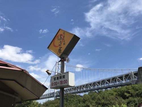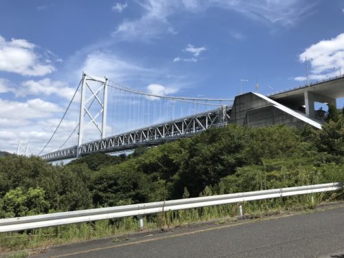 お店に到着するとしまなみ海道の大きな橋が出迎えてくれます。この景色なかなか雄大ですよ!