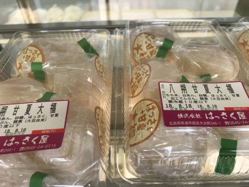 さて、ドルフィンファームしまなみに伺った後は当初の目的地こちらにお邪魔してきました!久々にきました!はっさく大福のはっさく屋さんです!とってもおいしいはっさく大福がいただけるいいお店なんですよ~!でもこの8月ははっさくがないのではっさく大福はおそらくないだろうな~とおもいながら伺いました。
