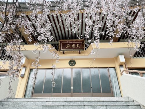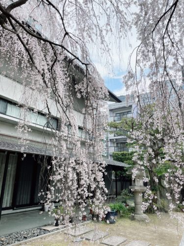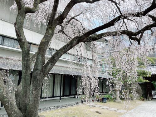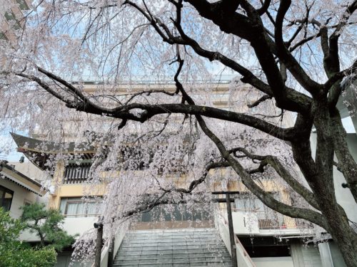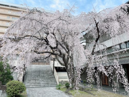 平和公園の桜も見ごろに近づいてきていますが、こちらの桜はほぼ満開になっています。パークサイドホテル広島から徒歩5分ほどのところにあります普門寺さんの桜です。こちらはしだれ桜になりますね。