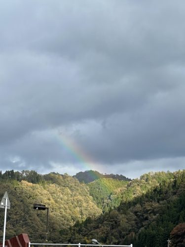 この後温井ダムに向かっていると、ふと目の前に虹が!車を降りて撮影するまでに虹が消えかかってしまったのですが、最初はものすごく立派な虹でした!いままで見た虹の中で一番美しかったかもしれません。